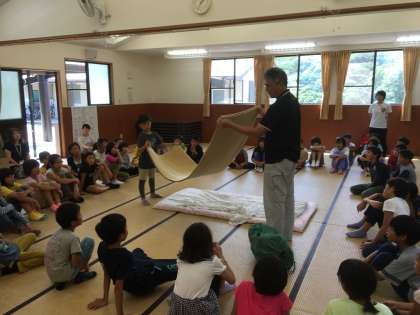 布団やシーツの敷き方・片付け方を教えてもらいました。