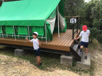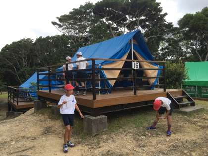 昨日自分たちが使ったテントやバンガローの掃除をしました。