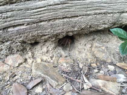 テントに上がる階段の小さな穴から何かが見えます。