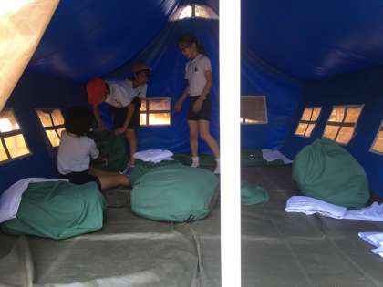 今日は男子がバンガロー,女子がテントで寝ます。