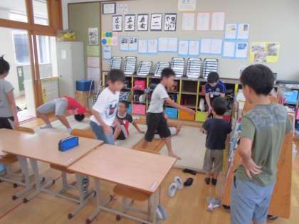 今日の休み時間には6年生がマットの練習をしに来ました!