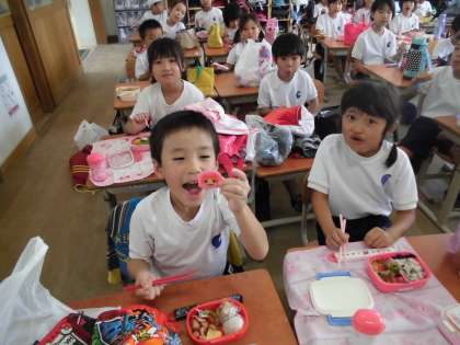 体を動かした後のお弁当はいつも以上に,おいしく感じたようです。