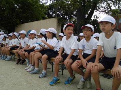 早々に2年生の出番が来ると,急にドキドキし始めた様子でしたが,みんなにこにこの笑顔でしっかり演技・競技を楽しんでいました。