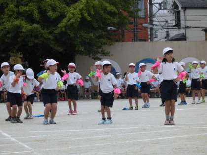 朝から子ども達の気分も上々,開会式も準備体操もいきいきと取り組んでいました。