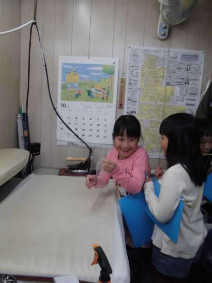校区にあるクリーニング店と,電気屋さんを見学に行きました。