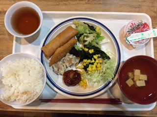 今日は、魚のフライや春巻き、シュウマイなど美味しいおかずがいっぱいありました。もちろん、野菜もしっかり食べました。