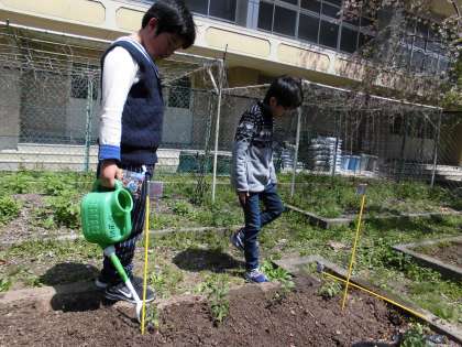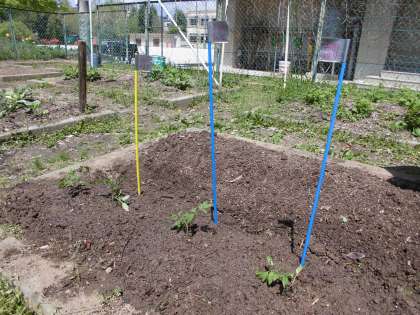 今年は一人一苗の≪マイトマト≫を育てることにしました。自分のトマトを毎日責任持って育てていけるようにこれから頑張っていってほしいと思います。