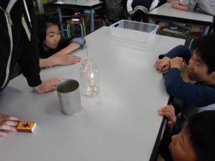 ものの燃え方の学習をしています。