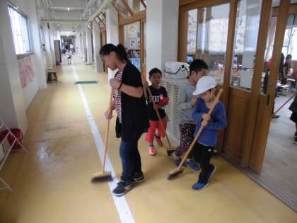 1年生が,自分たちで掃除を始めました。
