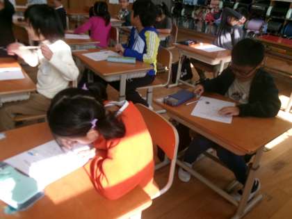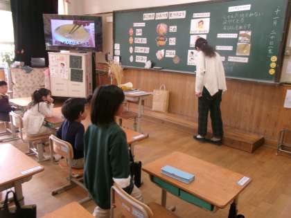 食の指導がありました。「おこめのひみつをしろう」ということで、「こめたろう」を通してお米のでき方や期間、そして、朝ごはんにお米を食べるとどんなにいいことがあるのかを教わりました。その後、「こめたろう」にお手紙を書きました。一粒一粒を大切に感謝しながら食べたいという気持ちになったようです。