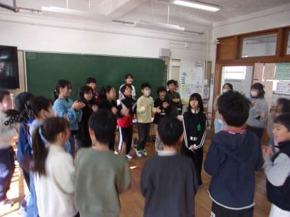 みんな遊びの時間にクラスで「震源地ゲーム」を楽しんでいました。