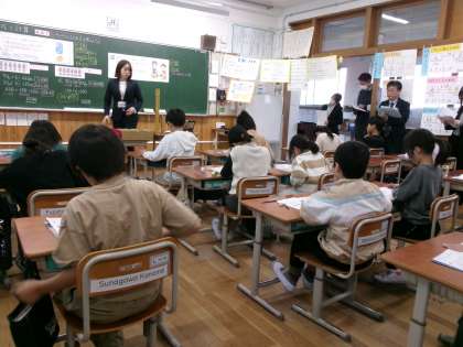 他の学校や大学からもたくさんの参観者がいましたが、いつもどおり、発表したり、ノートをかいたりして頑張る姿がたくさん見られました。
