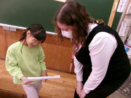 野菜の言い方を練習した後は、自分たちで考えたサラダを友達に紹介しました。