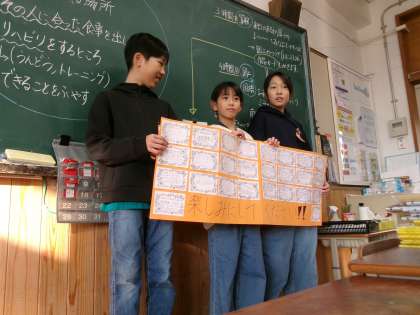 4年生が朝読書の時間に学習発表会のお誘いに来てくれました。