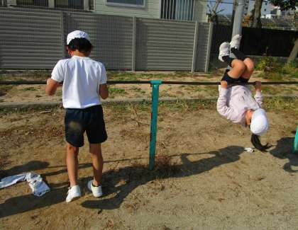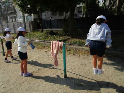 友だちとアドバイスを出し合ったり、タオルを使ったりして、できる技が増えました。