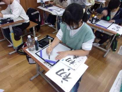 これまでの学習を生かして、「初春」を書きました。集中して、お手本をしっかりと見ながら書いていました。