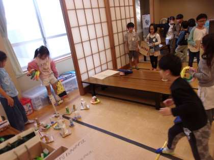 2年生の学習発表会のおもちゃランドに招待してもらい、生活科で作ったたくさんの楽しいおもちゃで遊ばせてもらいました。