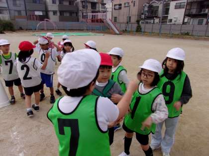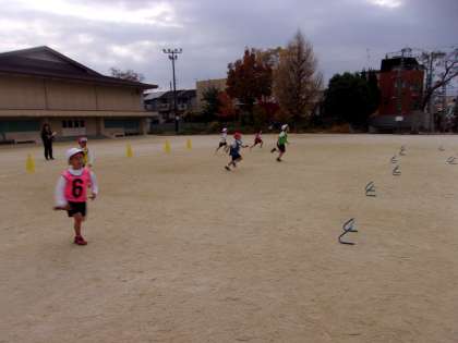 今日のリレー遊びでは、折り返しリレーの他に、ミニハードルを飛び越えたり、コーンを回ったりして楽しみました。チームで作戦を立てるのも上手になってきています。