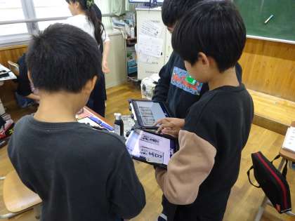 自分でめあてを決めて、練習の仕方を考えながら「初春」を書きました。最初と最後に書いた作品をタブレットで撮影し、比べられるようにしました。友達と気を付けたポイントなどを話し合い、振り返りをしました。