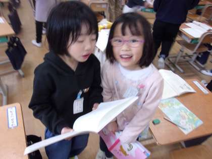 教科書のお手本を見ながら、自分だけの日付歌・曜日歌も作って友達と楽しみました。