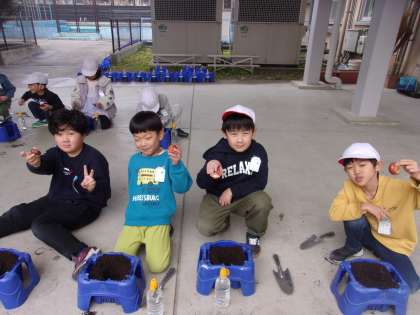 今日、チューリップの球根を植えました。「何色の花が咲くかな。」と、とても楽しみのようです。明日から、水やりなどのお世話を頑張って欲しいと思います。