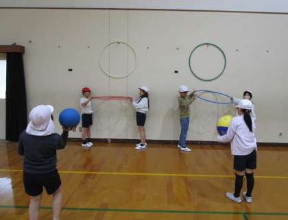 自分たちが考えた遊びをクラスのみんなに紹介しました。