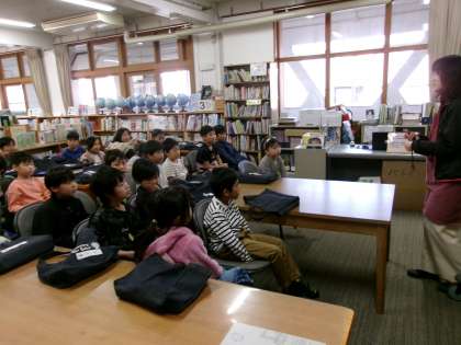 学校司書の先生に、図書館で読み聞かせをしていただきました。