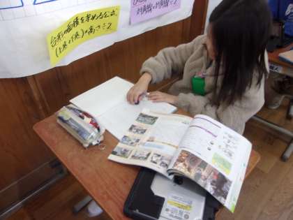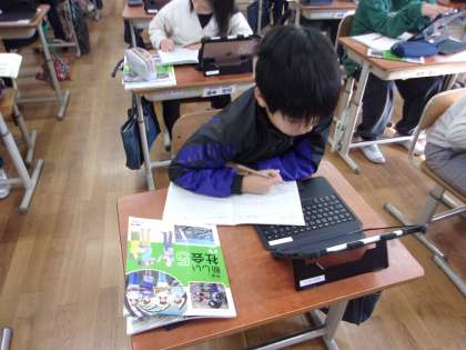 タブレット端末や教科書を使いながら熱心に調べていました。