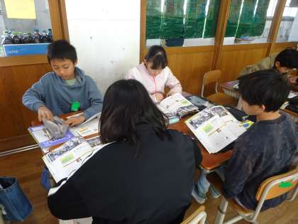 どのようにニュース番組を放送しているのか、教科書やタブレットを使って調べ学習をしました。大事な言葉などをグループで相談しながら、まとめることができました。