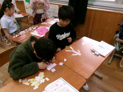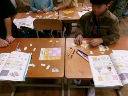 様々な模様を作りを通して、長方形や正方形、直角三角形、それぞれの特徴をつかんでいしました。
