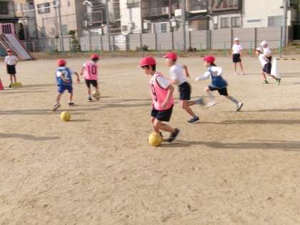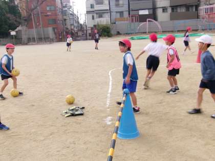 体育科の学習では、ボールけりあそびをしています。