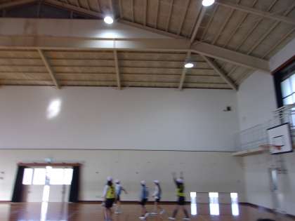 バスケットボールの学習を進めています。自分たちで時間を測ったり得点を入れたりしてゲームを進めています。