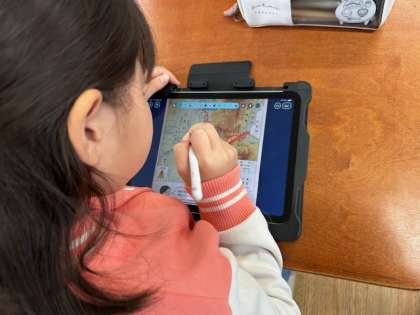 タブレットの地図に色を塗って調べました。