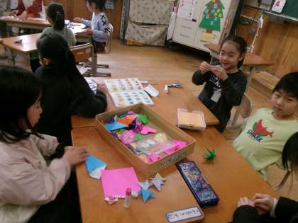2学期のお楽しみ会を計画しています。どんなことをしたいかを話し合い、その後、係を決めて準備をしています。みんなが楽しめるようにとルールを決めたり、景品を作ったりと楽しそうに準備をしています。