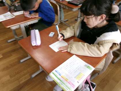 おうちに持って帰りますので、住所をかいて投函してくださいね。