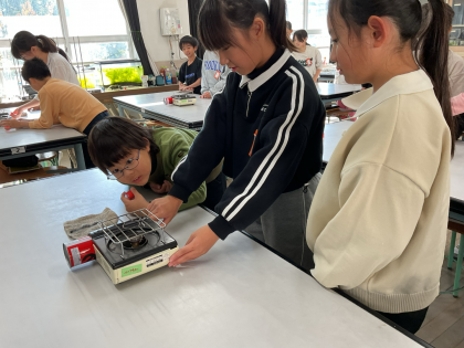 子どもたちは「火がついた!」と驚きながらも、先生の説明をよく聞いて安全に操作しました。