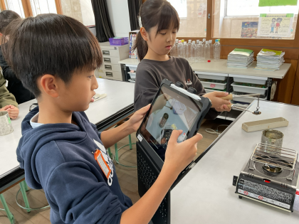 理科の学習で、金属を温めると体積がどうなるのかを調べました。