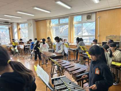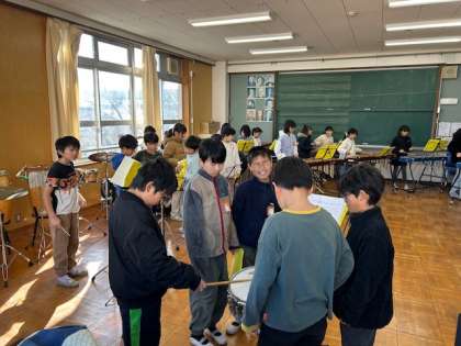 3学期に行う茶色の小びんの演奏に使う楽器を実際に触って選びました。