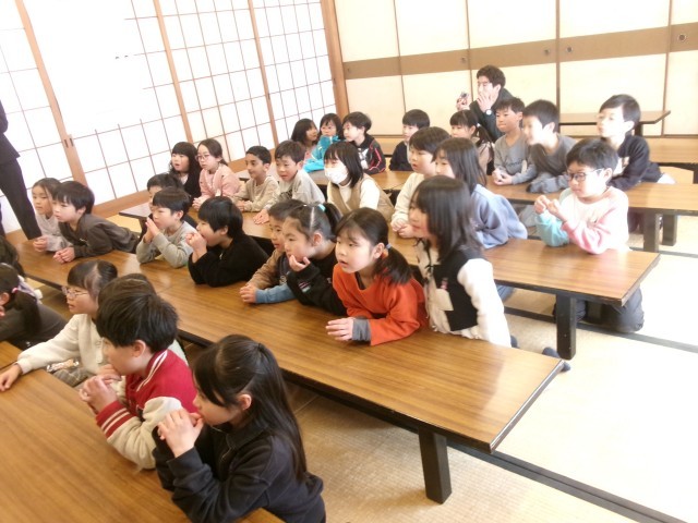 昼チャレンジの時間に、地域の方が本の読み聞かせをしてくださいました。「やまんばのしっぱい」という本です。やまんばが唱える「ばんまや ばんまや。」という呪文が面白く、楽しみながらお話の世界に浸っていました。