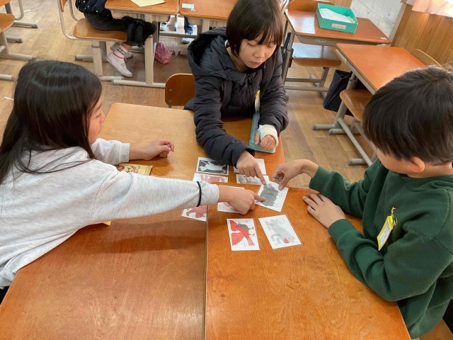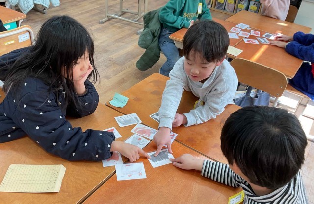 動物や色の発音練習をした後に、ポインティングゲームをしました。