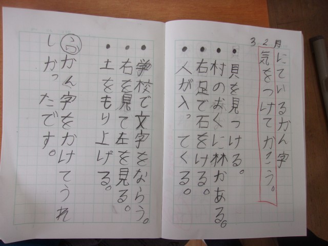 国語で、似ている漢字に気を付けてノートに書きました。