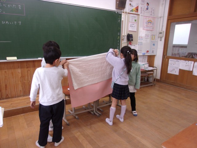 算数で、ものの広さ比べをしました。