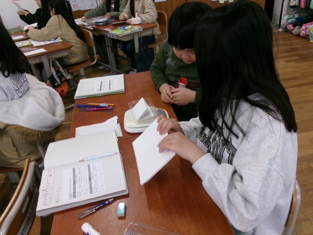 画用紙を折ったり、巻いたりしても重さが変わらないのかをたしかめました。