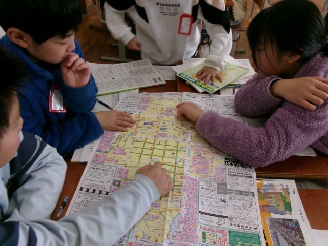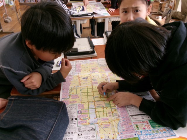 校区の安全マップを見て、地域の中の危険なところをさがしました。