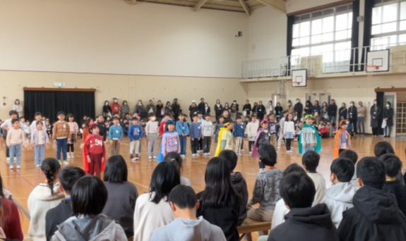 1年生は、「ありがとうレンジャー」を中心に、6年生への感謝の気持ちを言葉とダンスで伝えました。