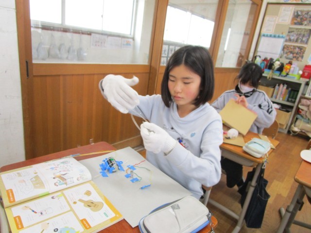 理科の学習で、これまでに習ったことを生かしておもちゃを作っています。