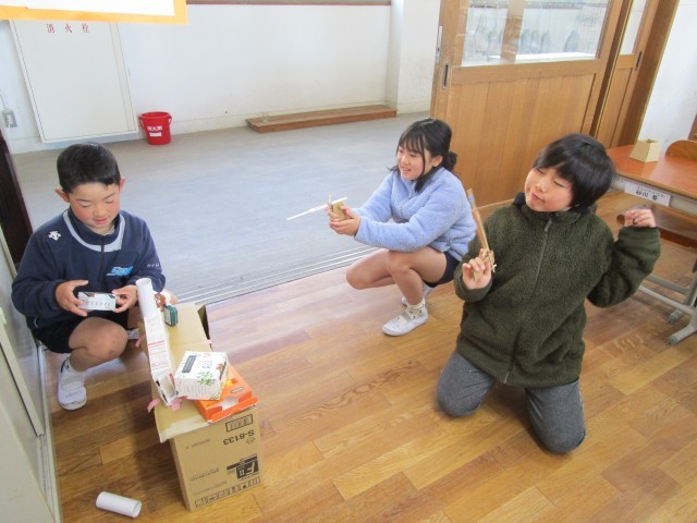 これまで習った学習を生かしてつくったおもちゃでみんなで遊びました。