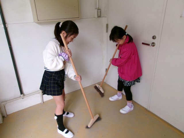2年生には、掃除名人がたくさんいて驚きました。分担場所を一生懸命掃除していました。