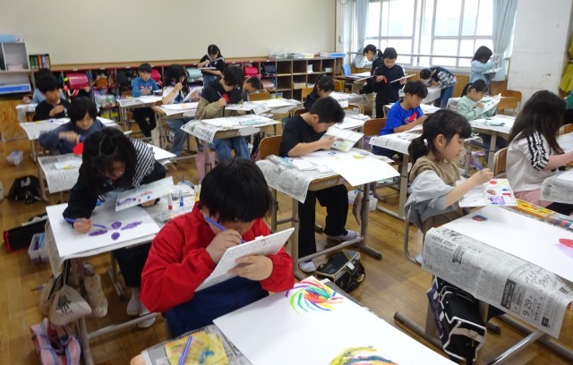 まぼろしの花を描きました。種を描いてから、どのような花が咲くかをイメージしました。それぞれイメージする、まぼろしの花ができました。