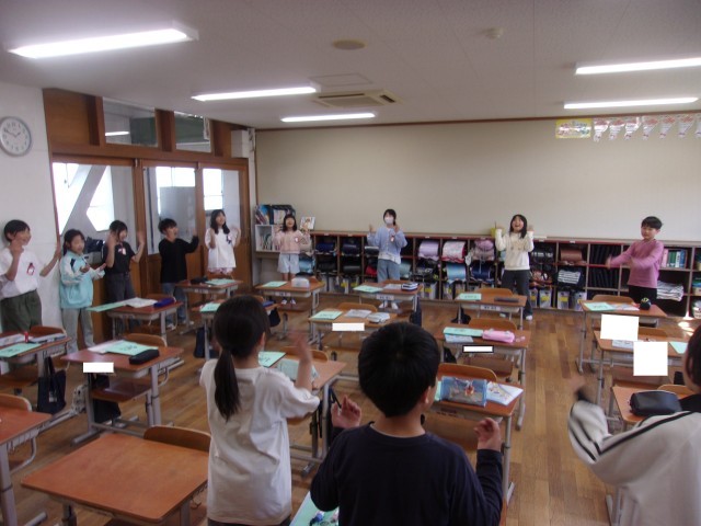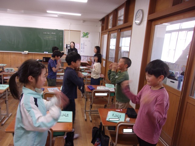 色々な友達と一緒に「Hello song」を歌ったり、世界のあいさつを知ったりして楽しみました。